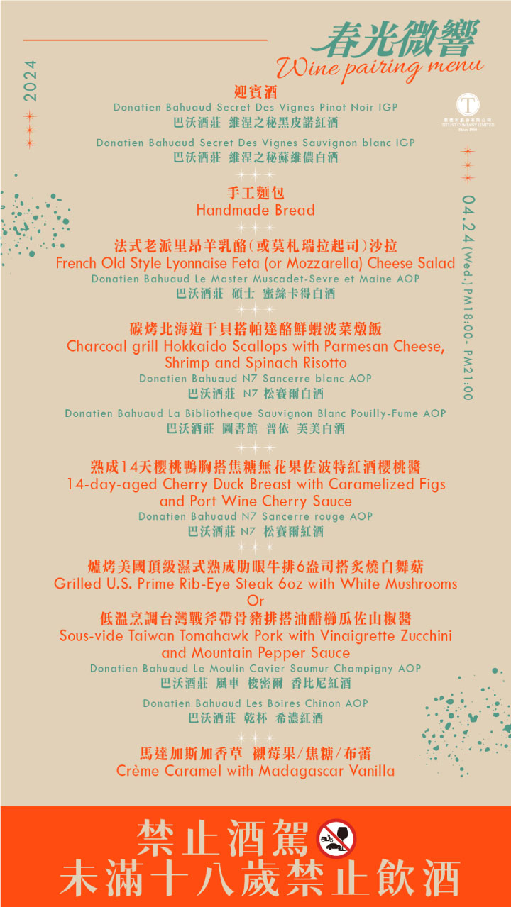 l 萬豪主廚特別為 Donatien Bahuaud 精心設計雙主菜菜單,邀請您體驗綿延一千公里羅亞爾河流域真實滋味。
